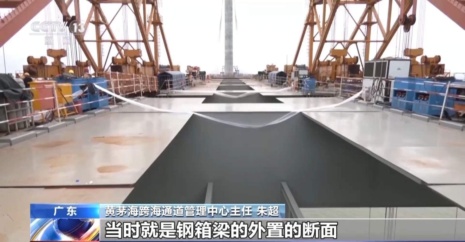 黃茅海跨海通道管理中心主任 朱超:渦振這一塊,像我們看到的外面這些鋼板,這個其實不是主體結構需要的,就是為了抑制渦振需要的。這一塊整個全線做了差不多150多種的斷面。