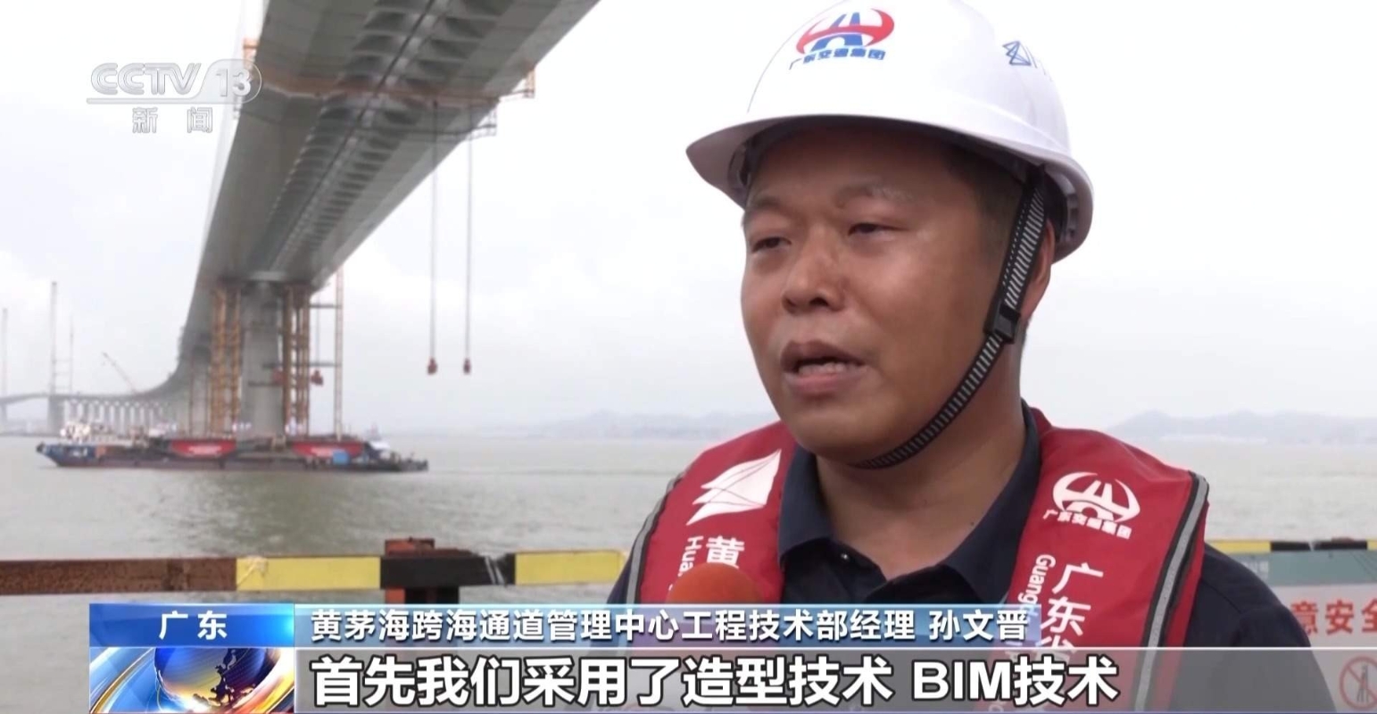 黃茅海跨海通道管理中心工程技術部經理 孫文晉:主塔建造,首先我們採用了造型技術,BIM技術,實現了它所有斷面的一個三維的姿態,能够保證我們在建設期,我們的鋼筋,我們的模板都能够實現大幅提高精度。(完) 【編輯:丘志彬】