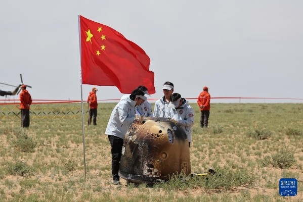 6月25日拍攝的嫦娥六號返回器回收現場。新華社圖片 月壤中包含這些特殊成分 不要小看這些月球樣品中隱藏的重要信息。據記者瞭解,此前嫦娥五號於2020年12月17日從月球正面帶回1731克月壤樣品,累計向中國國內131個研究團隊發放7批次共85.48克科研樣品。雖然發放月壤樣品僅佔采回樣品的5%左右,但取得的科學研究成就涵蓋了月球形成、演化、太空風化作用與機制以及資源利用等多個領域。 例如《國家科學評論》期刊6月17日發表的論文顯示,吉林大學鄒猛教授、張偉教授、李秀娟正高級工程師及中國科學院金屬研究所任文才研究員等通過對嫦娥五號鑽采岩屑月壤的觀察分析,首次發現天然形成的少層石墨烯。石墨烯以其新奇的物理現象和非凡的特性,在包括行星和空間科學在內的廣泛領域發揮著越來越重要的作用。 據估計,星際碳總量中約1.9%是以石墨烯的形式存在,其形態和性質由特定的形成過程決定,因此天然石墨烯的組成和結構特征將為星體的地質演化和月球的原位資源利用提供重要的參考和信息。 從嫦娥五號月壤中,中核集團核工業北京地質研究院科研人員還“挖”到了“嫦娥石”。據介紹,中核集團核工業北京地質研究院月球樣品研究團隊,通過X射線衍射等一系列技術手段,在14萬個月球樣品顆粒中,分離出一顆粒徑約10微米大小的單晶顆粒,并成功解譯其晶體結構。