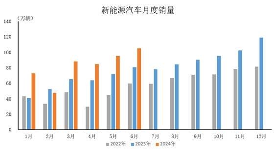2024年6月,新能源汽車產銷分別完成100.3萬輛和104.9萬輛,同比分別增長28.1%和30.1%。 2024年1-6月,新能源汽車產銷分別完成492.9萬輛和494.4萬輛,同比分別增長30.1%和32%。