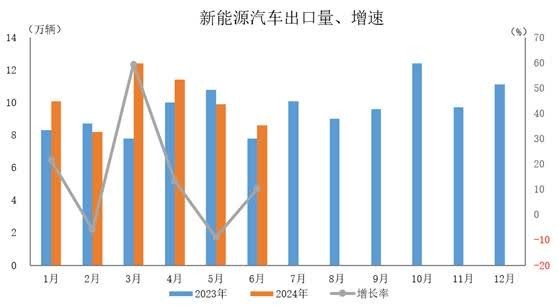 2024年6月,新能源汽車出口8.6萬輛,環比下降13.2%,同比增長10.3%。 2024年1-6月,新能源汽車出口60.5萬輛,同比增長13.2%。(完) 【編輯:丘志彬】