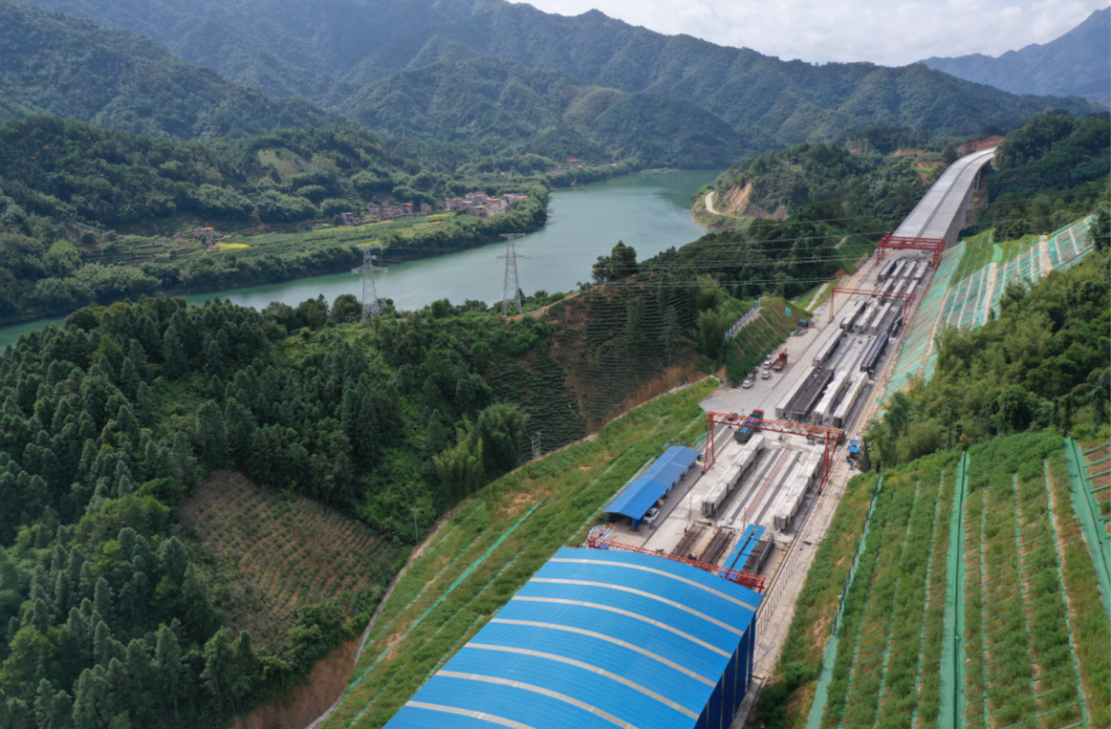 平昭高速TJ4分部共設置2個預制梁場,負責15座橋樑預制梁供應任務,預制T梁共計1154片,其中30米T梁305片、40米T梁849片。 自梁場建設以來,中交路建項目團隊將“永臨結合”理念融入大臨設施建設,通過減少土地佔用,恢複邊坡綠化等措施,最大程度降低對當地生態環境的影響;堅持以科技賦能,全面推行可活動的台座式坡度調節器,鋼筋定位架,鋼絞線穿索機,智能張拉、壓漿、噴淋養護系統等新技術、新設備,推動T梁預制效率和質量大幅提升。