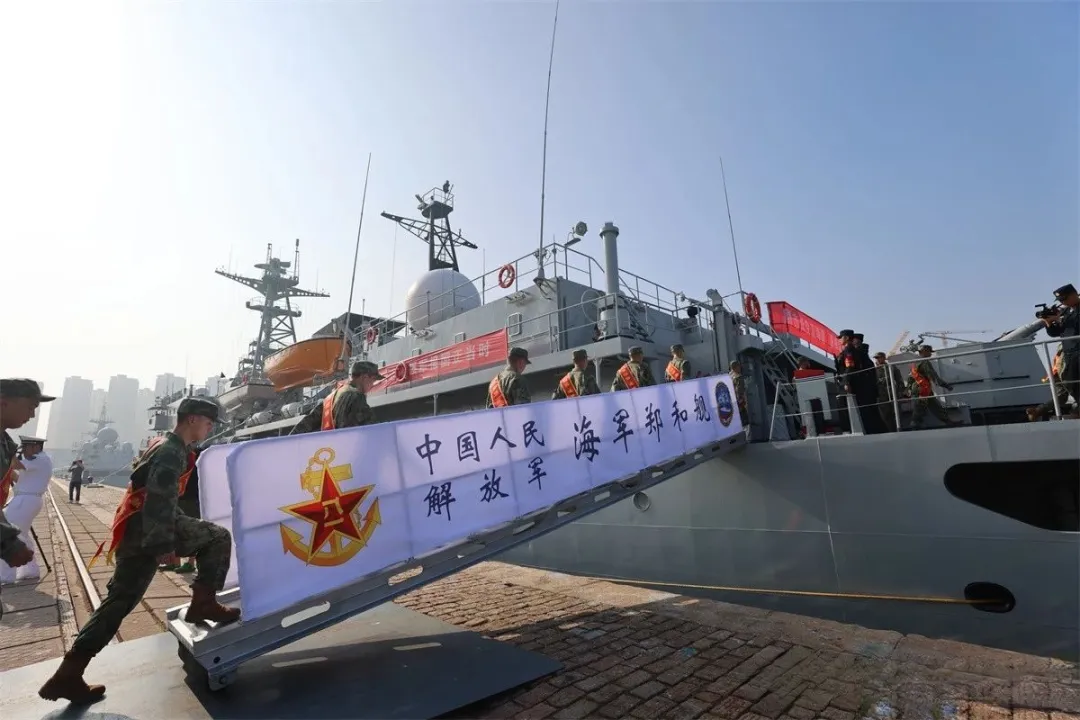 香港新聞網8月16日電 8月15日,中國海軍航空大學2024級部分艦載機飛行學員在青島某軍港集結,他們要乘坐舷號81的鄭和艦去報到。這也是海軍首次用軍艦送艦載機飛行學員報到。 當天上午8時許,新學員整齊列隊通過“出征門”,登上靠泊在碼頭的鄭和艦。