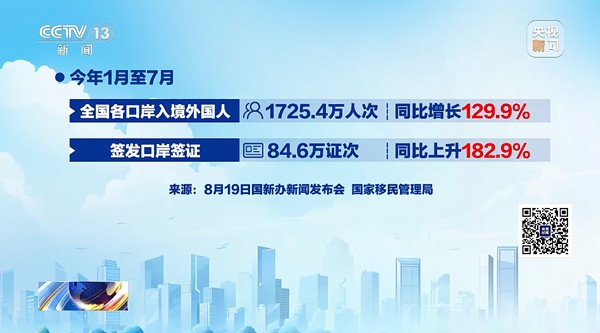 外國人來華旅遊每天人均消費3459元香港新聞網8月20日電 據央視新聞報道,8月19日,中國國家移民管理局發佈最新統計,今年1月至7月,全國各口岸入境外國人1725.4萬人次,同比增長129.9%,來華旅遊外國人預計拉動消費超1000億元。 (視頻來源:通視) 怎麼看待入境外國人次的大幅增長?這種變化又是如何發生的?當入境游市場的熱度持續攀升,我們又該如何不斷地增強吸引力,吸引更多遊客來到中國?