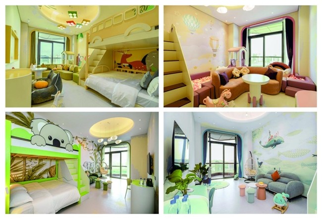 本次梧桐樹大廈酒店開放了4大主題客房。其中,海洋主題是暢遊海底世界,近距離與海洋生物互動;森林主題是穿越大自然,開啟冒險之旅;童話主題是感受粉色浪漫,走進芭比的世界;積木主題是沉浸式搭建夢想之城,共築童真美好。