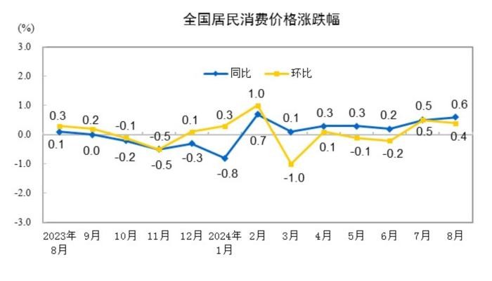 中國國家統計局:8月份居民消費價格同比上漲0.6%分享到: