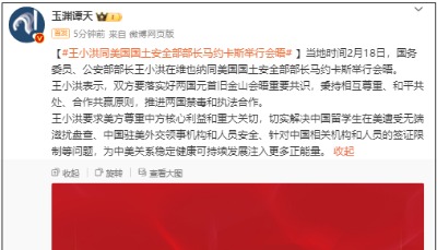 中國公安部長再同美國國土安全部部長視頻通話分享到: