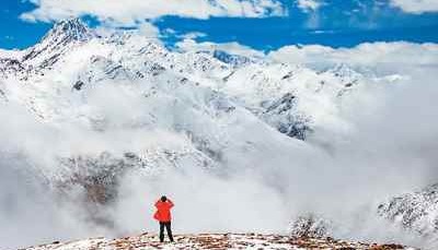 香港新聞網10月13日電(記者 李明珠)從“勇敢的人先享受世界”再到“小小雪山輕鬆拿捏”,在鋪天蓋地的互聯網貼文的加持下,近年來攀登雪山成為裝飾朋友圈的社交“硬通貨”。不斷掀起的登山熱潮中,越來越多人把攀登雪山列進了人生清單。 距四川省成都市僅175公里的四姑娘山便是其中之一。四姑娘山風景區被稱為“雪山的博物館”,這裡有著大規模的雪山群,海拔5000米以上的雪山多達85座,其中海拔6250米的四姑娘山幺妹峰更被譽為“蜀山皇后”,而難度較低的大峰是非專業人士可以徒步登頂的雪山,越來越多的人選擇來此以實現攀爬人生第一座雪山的夢想。