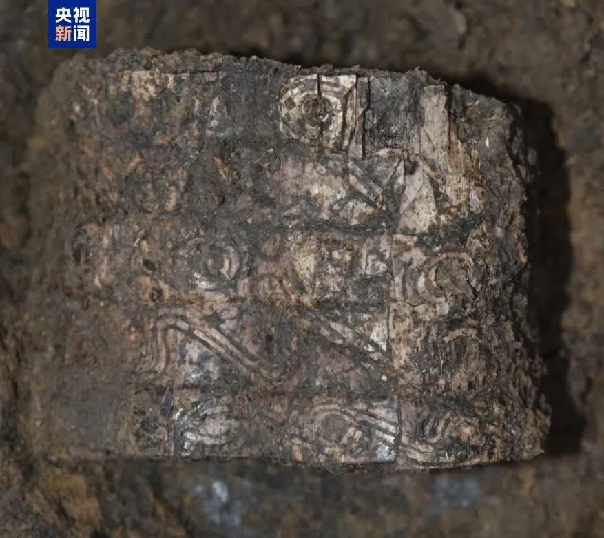 △圖為M27大墓出土的紋飾繁複的象牙製品。(考古隊供圖) 新發現的M27是一座特大型大汶口文化墓葬,總面積逾17平方米,從墓葬規格來看,墓主地位顯赫,推測為古國君主之類。M27大墓長約4.8米,寬約3.68米,墓室有棺有槨,隨葬品十分豐富,包括各類陶器、玉飾300餘件。