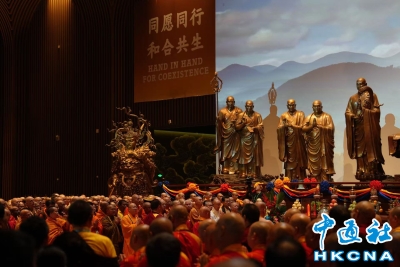 香港中通社寧波10月15日電 (記者 施鑫岳) 15日上午,從世界各地前來參加第六屆世界佛教論壇的200餘名海內外高僧大德,相聚浙江寧波雪竇山,同植“歡喜林”,共結“歡喜緣”。