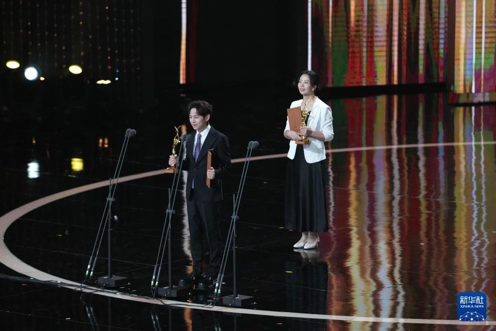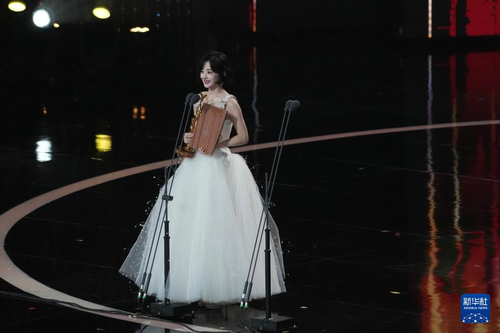 10月20日,趙麗穎憑藉《風吹半夏》獲最佳女主角。新華社記者 薛宇舸 攝 演員獎項方面,範偉憑藉《漫長的季節》獲最佳男主角,趙麗穎憑藉《風吹半夏》獲最佳女主角,王景春憑藉《警察榮譽》獲最佳男配角,高葉憑藉《狂飈》獲最佳女配角。