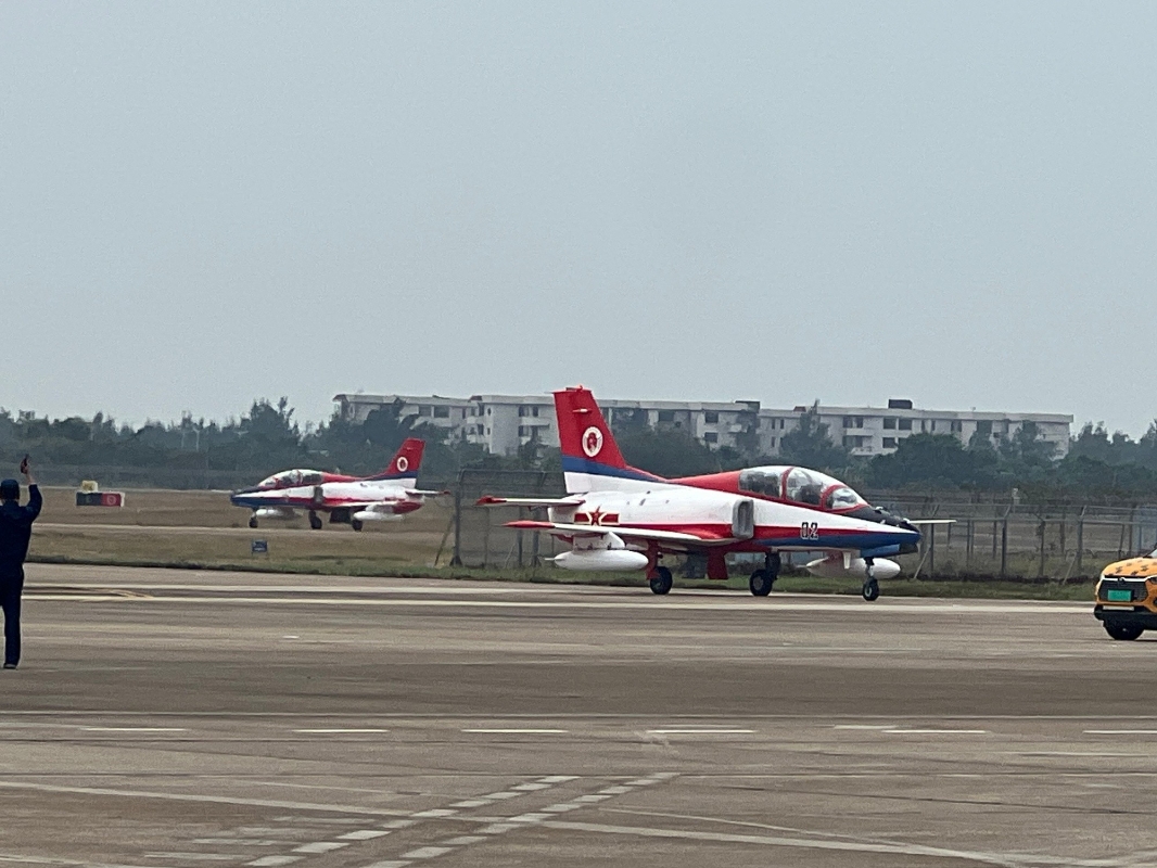 中國海軍重型艦載戰鬥機殲-15T落地珠海。(圖源:@中國軍號 ) 今天,中國空軍“紅鷹”飛行表演隊也落地珠海。“紅鷹”飛行表演隊為本屆航展設計了20多個特技飛行動作,部分進行優化更新,將為航展觀眾帶來更多驚喜。