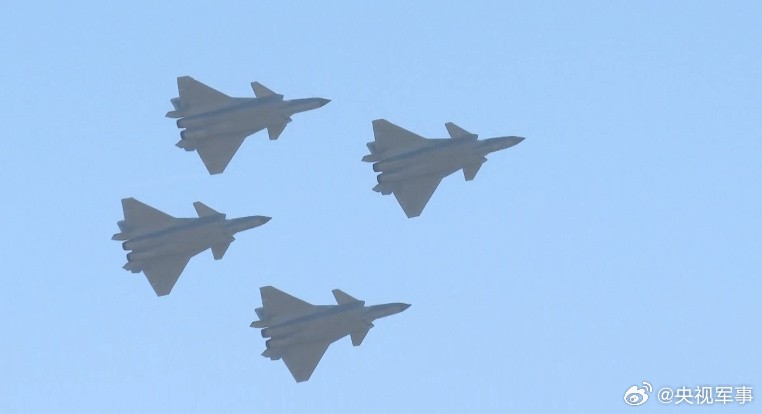 4架殲-20出現在珠海金灣機場上空,并進行了首次場地適應性訓練。(圖源:@央視軍事 )