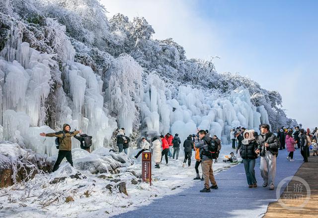 金佛山冰瀑奇觀,吸引遊客打卡(上游新聞) 金佛山是世界自然遺產和中國國家5A級旅遊景區,海拔高達2238米,是重慶地區海拔最高的旅遊景區之一。這裡的高山氣候造就了中國西南地區獨特的雪原風光,喀斯特台原地貌更是形成了眾多的冰瀑奇觀,晶瑩剔透,美不勝收。