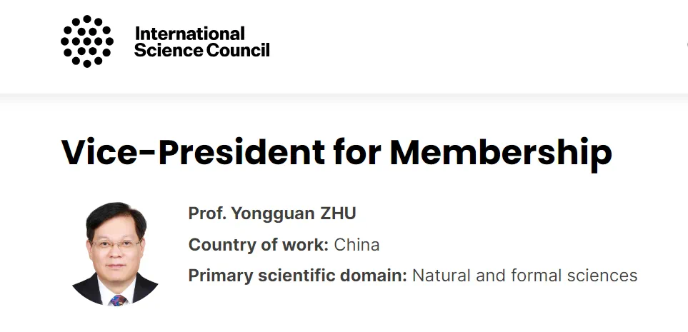 國際科學理事會官網截圖 ISC是世界上成員覆蓋面最廣泛、學科門類最齊全的綜合性科技組織,在國際學術界具有廣泛的影響力,是全球重要的戰略資源。ISC會員事務副主席是ISC管理層重要崗位,負責協調會員關係管理,制定會員發展策略,為ISC長遠發展提供戰略指導和建議。 朱永官院士長期從事環境土壤學和環境生物學研究,現任中國科學院生態環境研究中心主任,曾榮獲2023年度國家自然科學獎二等獎、國際土壤科學聯合會李比希獎等重要獎項。(完) 【編輯:丘志彬】