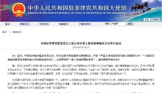 香港新聞網12月26日電 據中國駐菲律賓大使館12月25日消息,中國駐菲律賓使館發言人就菲律賓防長特奧多羅涉華錯誤言論答記者問。