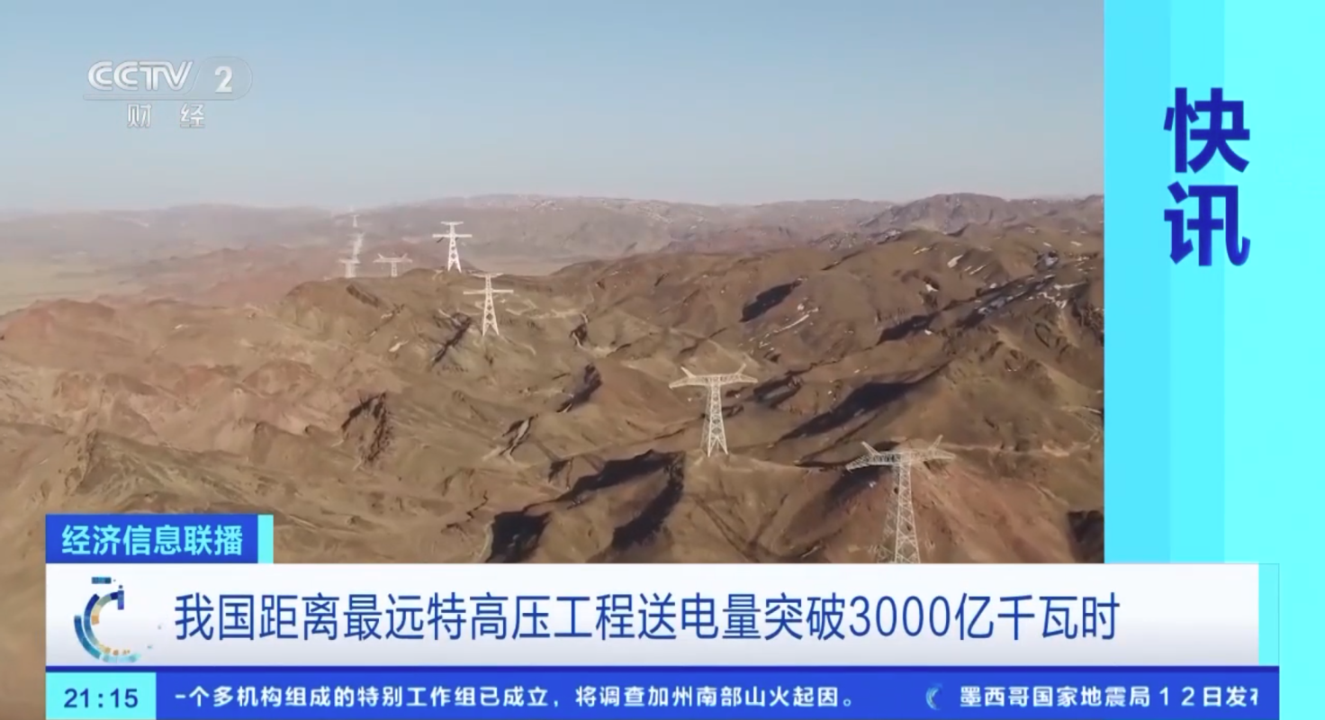 中國距離最遠特高壓工程送電量突破3000億千瓦時分享到: