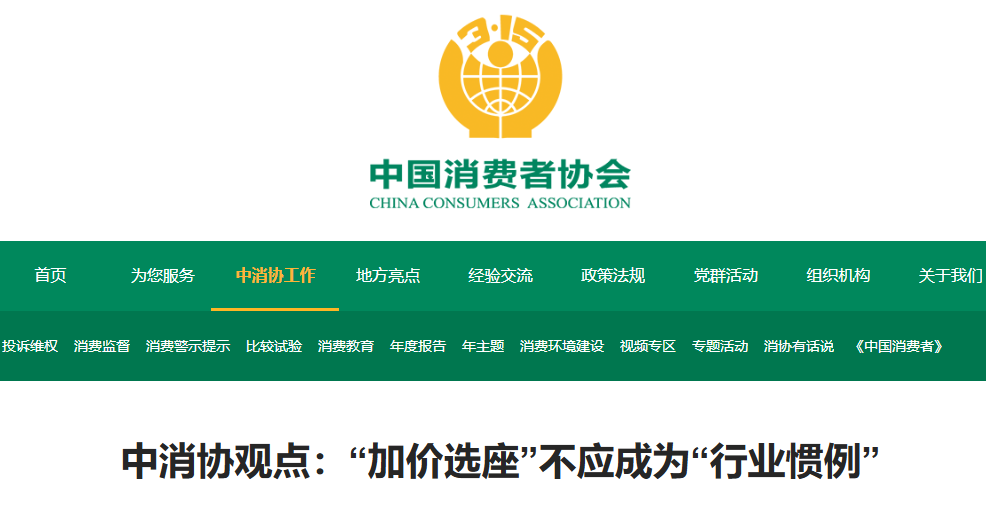 “中國消費者協會”官網截圖 中消協表示,“先到先得”一直是民航業約定俗成的選座規則,近幾年,一些航空公司卻以“加價選座”為手段,以“安全飛行”為借口,不斷試探消費者的底線。這樣擅自加價的行為如果不加以遏制,將影響整個消費市場的風氣,其他商品或服務在一定條件下都有可能在定價之外另行區分情況加價銷售,從而演變為一種不公平的所謂“行業慣例”,侵蝕市場秩序,損害消費者權益。 中消協認為,“加價選座”違背了公平交易的原則。經營者確定價格應有對應的實質服務。不同艙位定價不同是因航空公司提供的服務不同,而經濟艙提供的服務是相同的,要求消費者“加價選座”本身缺乏定價基礎。消費者付費購票已為航空公司提供的運輸服務支付對價,根據長久以來的交易慣例,座位是“先到先得”,不用另行付費。 據悉,一些航空公司以所謂“行業慣例”為由,在選座這一基本服務中引入加價機制,將靠窗、靠過道或前排等座位鎖定,要求消費者支付額外費用。有消費者反映,值機時發現若不付費選座,免費可選座位寥寥無幾,甚至有時帶未成年子女出行也難以選擇相鄰座位,迫使他們不得不支付選座費。 中消協呼籲,春運臨近,建議相關主管部門主動作為,強化行業引導,規範經營行為。(完) 【編輯:林曉惠】