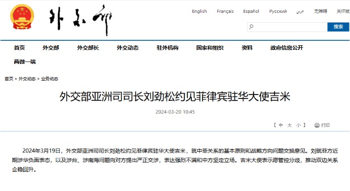 2月10日,中國外交部亞洲司司長劉勁松約見日本駐華使館首席公使橫地晃。圖源:中國外交部網站 據報道,7日,美國總統特朗普會見到訪的日本首相石破茂,兩國發表聯合聲明稱,雙方強調維護台灣海峽和平穩定的重要性,反對以武力或脅迫單方面改變台海局勢,支持台灣有意義地參與國際組織;《美日安保條約》第五條適用於釣魚島,反對中國在南海非法海洋主張、島礁軍事化及威脅挑釁活動。美方還稱,將在對抗中國經濟侵略方面加強合作。 對此,在2月10日中國外交部例行記者會上,外交部發言人郭嘉昆表示,美日聯合聲明涉華內容公然干涉中國內政,攻擊抹黑中國,渲染地區緊張局勢。中方對此表示強烈不滿,堅決反對。中方已向美方和日方提出了嚴正交涉。台灣問題純屬中國內政,是中國核心利益中的核心,不容任何外來干涉。美日兩國政府在台灣問題上均向中方做出過鄭重承諾,特別是日本負有侵略和殖民台灣的嚴重歷史罪責,更應該在台灣問題上謹言慎行。 郭嘉昆強調,當前台海和平的最大威脅是“台獨”分裂行徑和外部勢力的縱容支持。有關國家如果真的關心台海和平穩定,就應當恪守一個中國原則,旗幟鮮明地反對“台獨”。台灣地區參與國際組織活動,必須也只能按照一個中國原則處理,台灣沒有任何依據、理由和權利參與只有主權國家才能參加的國際組織。釣魚島及其附屬島嶼是中國固有領土,中方在有關海域開展活動完全正當合法。中方一貫按照世貿組織規則行事,所謂中國“經濟侵略”純屬無中生有。我們敦促美日恪守一個中國原則和自身承諾,立即停止干涉中國內政,不得以任何形式向“台獨”分裂勢力發出錯誤信號,切實尊重中方的領土主權和海洋權益,停止操弄涉華議題,以實際行動為本地區的和平與發展發揮建設性作用。(完) 【編輯:林曉惠】
