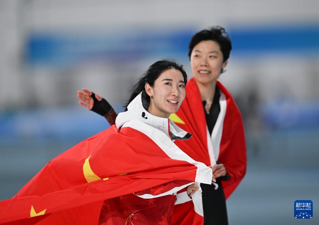 2月11日,韓梅(前)、殷琦在比賽後慶祝。新華社記者 陳振海 攝 哈爾濱亞冬會速度滑冰男子團體追逐決賽,由劉瀚彬、吳宇、哈那哈提·木哈買提組成的中國隊配合默契,以3分45秒94的成績奪得金牌。 哈爾濱亞冬會速度滑冰女子團體追逐決賽,由阿合娜爾·阿達克、韓梅、楊濱瑜組成的中國隊奪得金牌。這場比賽也是本屆亞冬會速度滑冰項目的收官之戰。至此,哈爾濱亞冬會的速度滑冰項目落下大幕,中國隊11金5銀5銅完美收官。(完) 【編輯:丘志彬】