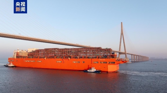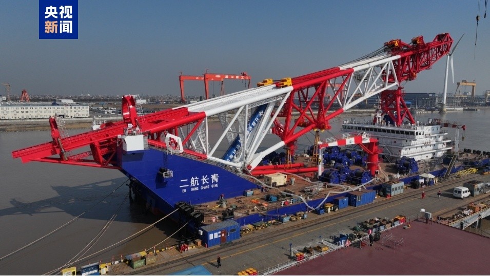 “二航長青”輪 央視新聞圖片 據了解,“二航長青”輪於2024年1月18日開工建造。該輪樁架高、吊樁能力大、抗風浪能力強,總長130.5米,型寬40.8米,型深8.4米,樁架高度達150米,可打最大樁重700噸、直徑7米的樁基。其核心設備油缸重385噸,直徑近2米,總長28米,重量、直徑、長度均為全球第一,由中交第二航務工程局有限公司牽頭研發,實現了超大超長油缸國產化替代以及核心技術自主可控。 該輪採用了直流母線超級儲能系統,配合高效永磁電機,能耗大幅降低,碳排放顯著減少。同時配備了先進的打樁作業管理系統、遠海星站差分功能打樁定位系統,能够實現樁的定位精度自動計算、實時監測,以確保打樁作業的安全高效。 在海事部門的維護下,該輪此次駛往蘇嘉甬高鐵——杭州灣跨海鐵路大橋施工現場,未來它還將在大型港口、跨海大橋、海上風電施工等工程建設中發揮作用。 作為中國船舶和海洋工程裝備產業第一大省,江蘇的造船完工量、新接訂單量、手持訂單量三大造船指標長期居中國前列,去年各類船舶出口規模居中國首位。(完) 【編輯:林曉惠】
