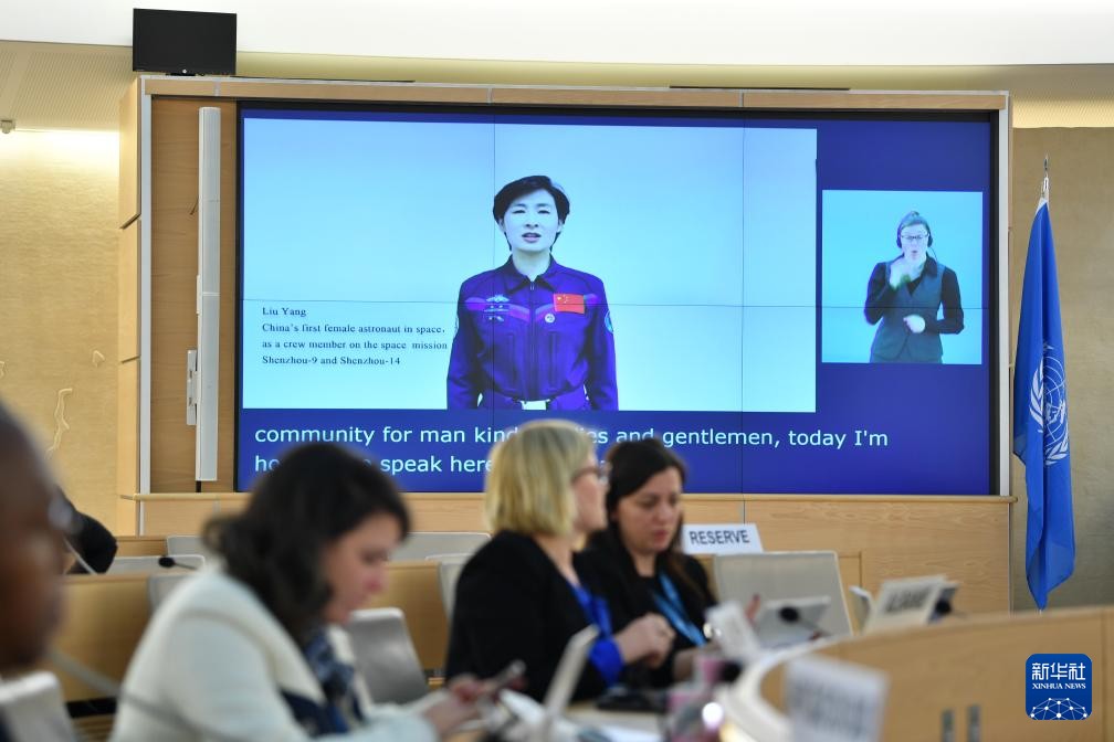 這是2月24日在瑞士日內瓦萬國宮拍攝的中國航天員劉洋在聯合國人權理事會第58屆會議“《北京宣言》和《行動綱領》三十周年”高級別會議上以視頻方式做主旨發言。新華社圖片 綜合媒體26日消息,聯合國人權理事會第58屆會議當地時間24日舉辦“《北京宣言》和《行動綱領》三十周年”高級別會議。劉洋表示,作為《北京宣言》精神的受益者、踐行者,當神舟飛船引擎點燃時,感受到的不僅僅是600噸推力的震撼,更是億萬中國女性托舉的力量。 劉洋說,從8倍重力的離心機到72小時狹小環境心理適應性訓練,中國航天“標準面前無性別”的平等理念彰顯了中國婦女事業發展的核心邏輯,即通過制度保障創造公平競爭環境,這正是《北京宣言》精神的具體實踐。 2012年,34歲的劉洋成為中國首位飛上太空的女航天員,在神州九號任務中,劉洋主要是在執行手控交會對接的時候進行監視、支持。除此之外,她在13天的飛行任務中還承擔科學實驗任務。(完) 【編輯:彭玉婷】