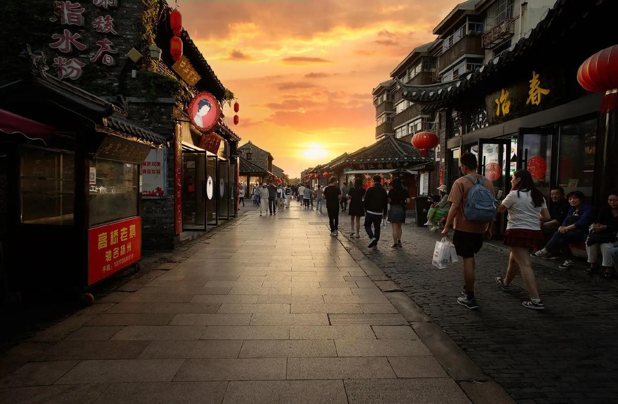 大明寺 晚上:東關街 + 彩衣街 步行街體驗:從大明寺出來,乘坐公交或打車前往東關街。這條有著千年曆史的古街,是揚州最具代表性的歷史街區,街道兩旁商鋪林立,既有售賣揚州特色手工藝品的店鋪,也有各種美食小吃攤。您可以在這裡購買到剪紙、漆器等特色紀念品。逛完東關街,可移步旁邊的彩衣街,這裡是美食的聚集地,性價比超高,推薦品嚐桂花糕、梅花糕、烤豬蹄等小吃。