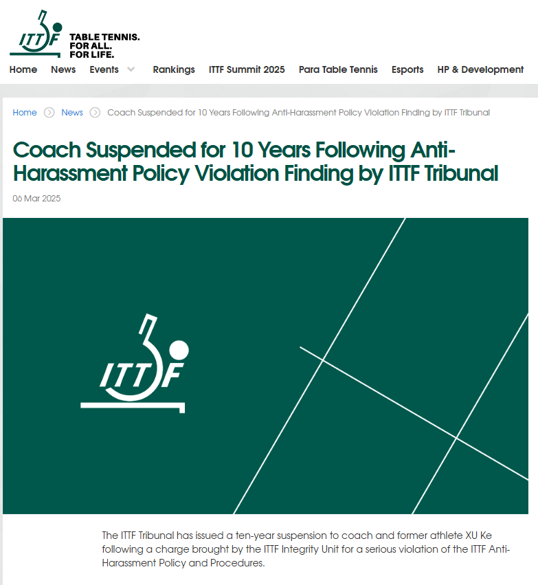 涉嫌性騷擾被禁賽10年 乒乓球教練徐克陷“羅生門”分享到: