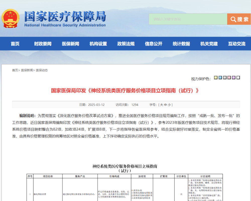 中國醫保局發布《神經系統類醫療服務價格項目立項指南(試行)》 圖源:中國醫保局官網截圖 腦機接口即是在大腦與外部設備之間建立直接連接的通路。簡單說,大腦在思維活動時產生腦電波,腦機接口則通過識別腦電波特徵直接讀取大腦意圖,將其轉化為計算機指令,實現人與機器或外部環境之間的交互聯通。探索者們希望通過轉換腦信號,創造讓癱瘓者行走、讓失語者“說話”、讓盲人“復明”等奇跡。 根據採集腦信號的方式,腦機接口技術主要分為兩類,非侵入式和侵入式。其中,非侵入式腦機接口無需侵入大腦內部,在頭皮表面使用電極、傳感器等設備,獲取大腦活動信息。具有易操作、成本小,安全性高、更快進入臨床應用等特點。 據介紹,《神經系統類醫療服務價格項目立項指南(試行)》充分體現支持腦機接口等新技術發展的理念,也對技術價值高、風險程度大的治療分別設置“常規”和“複雜”項目。考慮到未來出現的創新技術,專家共識認定為複雜情況的,可直接兼容入“複雜”項目收費,使臨床技術的管理回歸到臨床技術本身,提高價格項目兼容性。 今年1月,中國國家藥監局發布《採用腦機接口技術的醫療器械 用於人工智能算法的腦電數據集質量要求與評價方法》,從標準及監管層面推動腦機接口技術發展。北京、上海也相繼發布支持腦機接口發展的相關五年規劃方案。(完) 【編輯:彭玉婷】