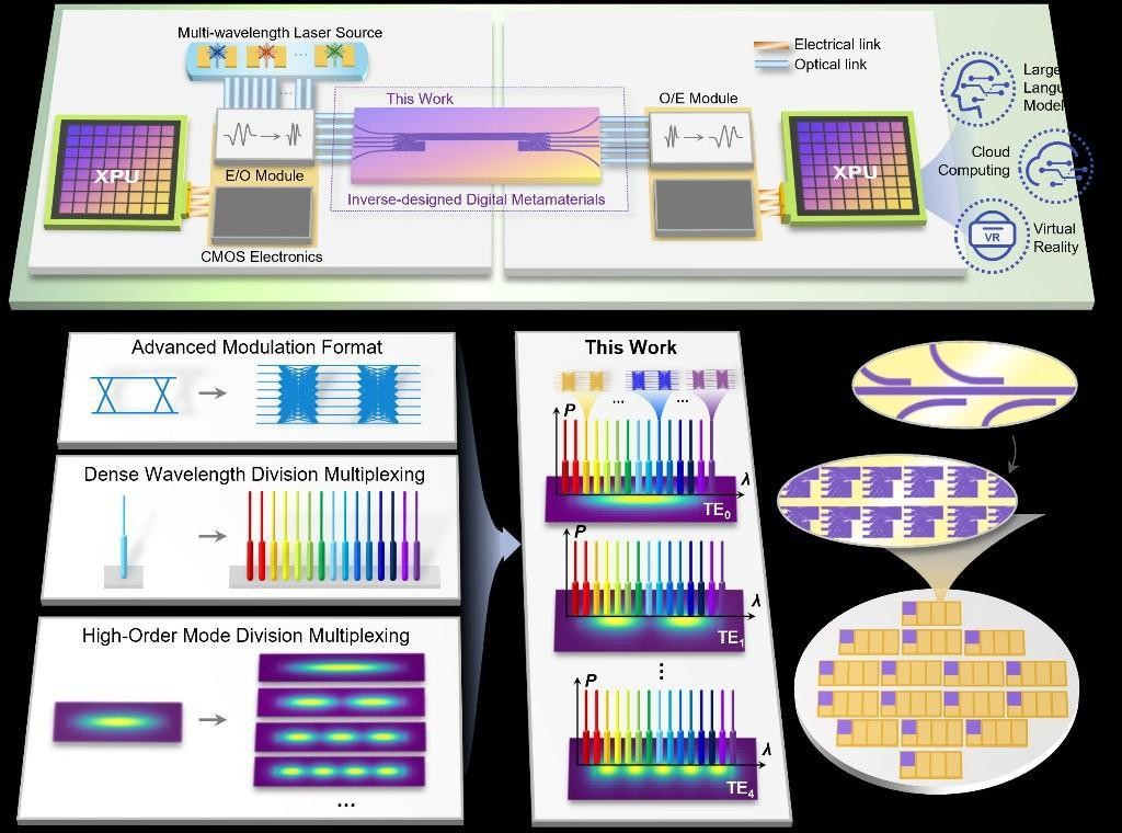 香港中通社3月13日電 據上海復旦大學3月13日消息,該校信息科學與工程學院張俊文研究員、遲楠教授與相關研究團隊開展合作,提出了基於多維光子複用的創新範式,實現了在時域、空域、頻域的多維並行信號傳輸,為後摩爾時代的算力發展提供了全新物理載體。相關研究成果發表在國際期刊《自然·通訊》上。