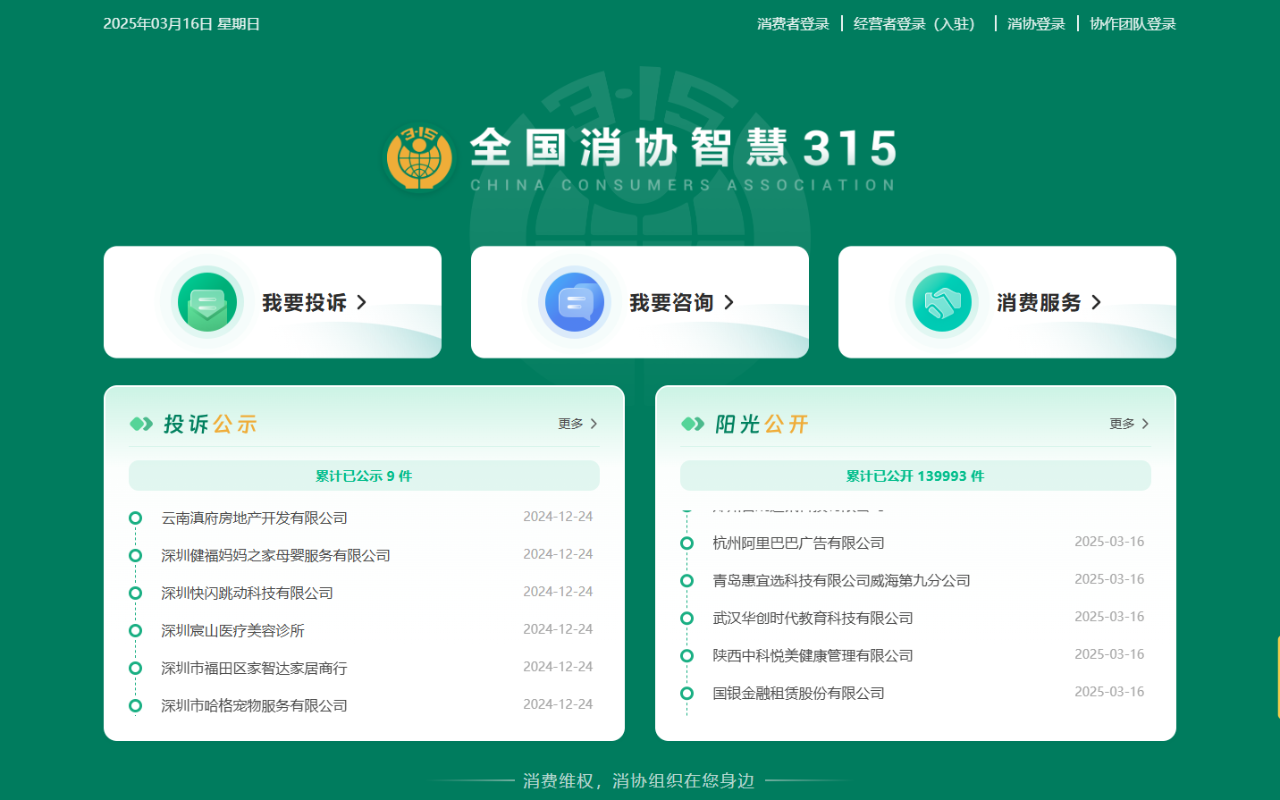 全國消協智慧315平台 圖源:網頁截圖 該平台自去年3月15日起試運行以來,已累計註冊消費者達到702786人,入駐經營者42913家,並接收了585387件在線投訴與諮詢,其中投訴案件共計576911件,成功處理了510126件,為消費者挽回經濟損失達4.1億元人民幣。 據悉,在試運行階段,“全國消協智慧315平台”實現了多項功能,包括暢通消費者的在線投訴渠道、實現在線和解及調解流程的無縫對接以及個案公示等。這些舉措顯著提高了消費者權益保護工作的效率和透明度。 接下來,平台將重點圍繞智能化和共治化建設進行優化升級。通過部署DeepSeek技術,實現面向消費者的智能問答服務,同時新增行業公示和指數公示等功能。特別是行業公示和指數公示功能,通過量化經營者在解決投訴過程中的表現(如處理時效、成功率等),形成投訴處理指數評分、行業排序及經營者畫像,從而激勵經營者更加重視並妥善處理消費者投訴,同時也為消費者提供了更直觀的選擇參考。 消費者可以通過電腦端網址或手機端微信、支付寶搜索“消協315”小程序註冊登錄平台。此外,平台還設置了“消協幫您查”、“消協幫您選”等模塊,提供企業服務聯繫方式查詢、商品比較試驗結果等實用信息,助力消費者做出更加明智的消費決策。(完) 【編輯:彭玉婷】