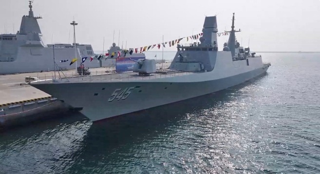 圖源:“南海艦隊”微信公眾號 綜合消息,4月12日“南海艦隊”微信公眾號發布“慶祝人民海軍成立76周年”海報評選活動,其中一張宣傳海報的主角為掛滿彩旗的054B型護衛艦二號艦“欽州艦”,舷號“555”,艦上官兵整齊列隊,意味著中國海軍054B型護衛艦二號艦已經低調服役。 054B型是中國自主研製建造的新一代護衛艦,由054A型升級優化而來,排水量約5000噸。據中通社此前報道,與054A艦相比,054B從排水量、艦載系統到戰鬥力,都有了全面的提升,續航能力也會更強,除近海、中遠海作戰任務外,還可進行遠洋任務。外觀上,採用與055型驅逐艦類似的一體化桅桿,艦艇信息集成與隱身性能大幅提升。 公開資料顯示,首艦“漯河艦”(舷號545)於2023年8月26日下水,2025年1月22日在山東青島交接入列。二號艦2023年10月29日下水。兩艘艦艇從下水到入列,僅僅用了不到兩年時間,這一速度令人驚歎。 054B型艦是中國海軍轉型發展的重要裝備,目前首批兩艘全部服役,引發台媒關注。台灣“ETtoday新聞雲”稱,隨著054B首艦“漯河艦”今年年初加入北部戰區後,二號艦“欽州艦”也已入列南部戰區,形成“一南一北”為現役兩艘航母擔任護航。 報道稱,預計054B型艦主要承擔搜潛/攻潛任務,有效應對攻擊型核潛艇對航母威脅,同時也兼具防空和反艦任務。(完) 【編輯:石歡歡】