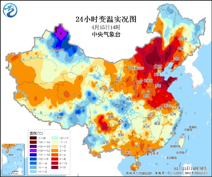 圖源:中央氣象台 隨著冷空氣離開,中國中東部大部受暖高壓控制,氣溫開始迅速衝高。未來三天,多地氣溫會達到近期高點,華北南部、黃淮、江漢以及陝西東南部、四川盆地等地最高氣溫可達30至33攝氏度,局地35攝氏度左右。華北、黃淮等多地最高氣溫將較常年同期偏高10攝氏度以上,同期少見。 大城市中,北京、天津、石家莊、濟南、太原都將是今年首次達到30攝氏度以上,鄭州、石家莊16日衝擊35攝氏度高溫線,爭奪今年北方省會級城市首個高溫,並可能打破北方省會、直轄市、首府最早高溫日紀錄;西安16日最高氣溫可達34攝氏度,後天會達到35攝氏度,也可能出現高溫。 南方多地本周氣溫將持續偏高,像成都將出現今年的首個30攝氏度,並且之後五天最高氣溫將維持在30攝氏度以上,重慶更是連續7天都可能達到30攝氏度以上,或將提前步入夏天。同時,江南部分地區本周也有望開啟入夏進程。 不過,由於夜間升溫相對較慢,中東部大部晝夜溫差將拉大,北方多地晝夜溫差在15攝氏度以上,白天夜間如同兩季。(完) 【編輯:彭玉婷】