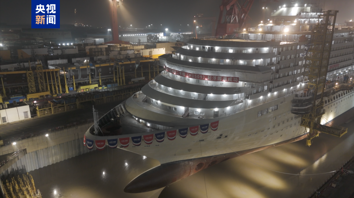 香港中通社4月28日電 28日,在中國船舶集團有限公司旗下上海外高橋造船有限公司船塢內,中國第二艘國產大型郵輪“愛達·花城號”順利實現塢內起浮,從結構和舾裝建造的“上半場”全面轉入內裝和系統完工調試階段。