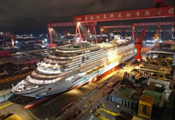 中國第二艘國產大型郵輪愛達·花城號完成塢內起浮分享到: