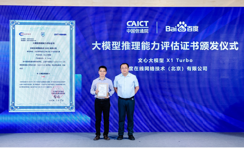 百度代表接受大模型推理能力評估證書。 圖:大V商業 活動上,百度集團副總裁吳甜、中國信息通信研究院人工智能研究所主任曹峰及文心一言用戶代表、16歲高中生陳君航分享了文心大模型的最新技術進展、全球大模型發展趨勢及使用體驗。 吳甜詳細介紹了文心大模型4.5及4.5 Turbo的技術突破。文心4.5 Turbo基於多模態基礎模型文心4.5,通過多模態異構專家建模等技術,實現文本、圖像、視頻的混合訓練,學習效率提升近2倍,多模態理解效果提升超30%。後訓練階段,百度創新自反饋增強技術,構建“訓練-生成-反饋-增強”閉環,顯著降低模型幻覺,提升複雜任務處理能力。深度思考方面,文心X1 Turbo融合思維鏈與工具調用,優化跨領域問題解決能力,輸出邏輯嚴密、表達自然。 在數據建設上,百度打造了高效的數據閉環,生產多樣化、高知識密度的數據,支持模型快速迭代。應用層面,文心大模型賦能超擬真數字人技術,支持超10萬數字人主播,直播轉化率達31%,降低80%開播成本。代碼智能體“文心快碼”生成代碼佔百度新增代碼超40%,服務760萬開發者。飛槳文心平台開發者超2185萬,服務67萬企業,推動區域產業智能化升級。 曹峰指出,文心X1 Turbo憑借結構化邏輯思考、優化技術和可信機制,廣泛支持多樣化應用。陳君航分享了文心一言如何助力其學習與編程,開發智能文案生成器為其母親減負,展現了AI普惠價值。文心大模型的技術突破與應用創新,正加速推動AI技術轉化為社會紅利。(完) 【編輯:葉永成】