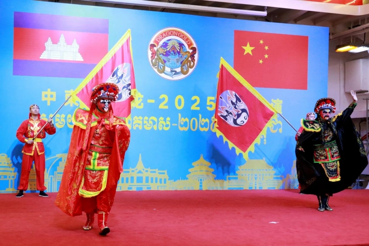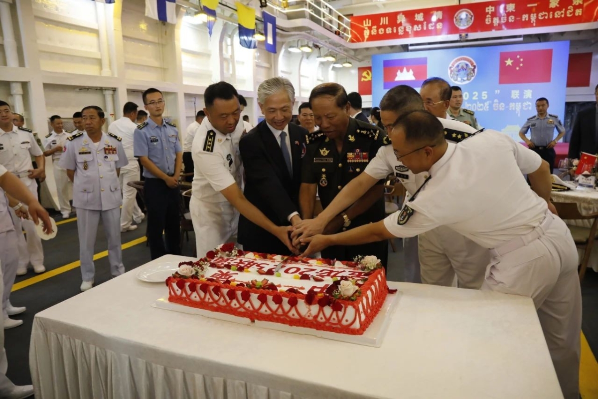 中柬“金龍-2025”聯演甲板招待會。圖源:南部戰區 據“南部戰區”微信公眾號28日消息,甲板招待會開始,柬埔寨國防部領導、聯演聯合導演部中方總導演、中國駐柬埔寨大使分別致辭,雙方參演官兵代表等200餘名嘉賓應邀出席。 當天,書法、國畫、茶藝、拓印、剪紙等中國傳統手工展示吸引嘉賓駐足觀看和體驗,多位中柬嘉賓邀請艦員寫下“中柬友誼萬歲”“中柬海軍友誼長存”等條幅,表達心中的美好祝福。