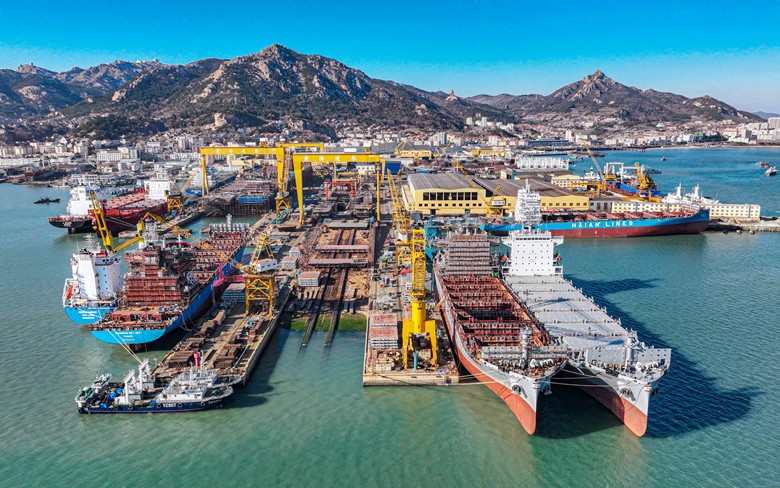 圖為中國山東省黃海造船有限公司船塢內,工人抓緊建造各類大型船舶。新華社資料圖 恒力造船(大連)有限公司總經理王孝海向媒體表示,該船廠手持訂單有170條船左右,以歐洲訂單為主,訂單已經排到了2029年,新建的兩個船塢下個月末要投入使用。 大連中遠海運川崎船舶工程有限公司總經理羅文清稱,按照載重噸來測算,公司的船舶交付量同比增加了58%;今年總共計劃交付12艘船,整體的作業量相對前幾年每年都有10%~15%的提升。目前手持的訂單,兩個船塢均排到了2029年的上半年。 廣發證券發展研究中心分析師汪家豪認為,全球船隊老齡化加深叠加近期歐盟,包括全球IMO(國際海事組織)對環保因素的影響,加快了船舶的更換節奏。美國301調查在短期的情緒衝擊的影響相對較大,從長期來看,不會對中國造船業的競爭力產生影響,也不會對全球造船產業長期發展改善的趨勢產生影響和阻礙。(完) 【編輯:彭玉婷】