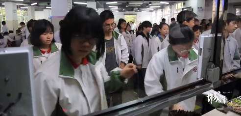 中學飯堂刷臉支付飯錢。網上視頻截圖。 西安國際港務區實驗中學跟浙江、江西等地多間學校一樣,都在學校食堂安裝刷臉系統,學生可以靠一張臉吃飯,家長也可以透過手機應用程式查看扣款情況,但近日有家長表示,系統在短時間內重複扣款,最嚴重的一次在10秒內重複扣了4次、合共48元人民幣。