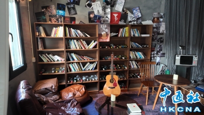 “小號地段”酒館內,布置的開展“以書換酒”活動的角落。  香港中通社圖片