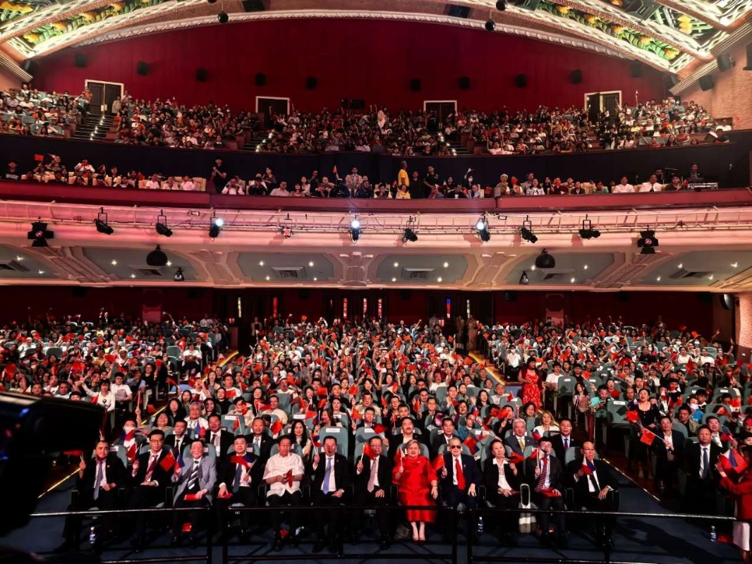香港中通社6月10日電 中國駐菲律賓大使館9日與菲律賓外交部、菲華各界聯合會共同舉辦“和合共榮,攜手致遠”慶祝中菲建交五十周年暨第24個中菲友誼日文藝晚會。中國駐菲大使黃溪連出席活動並致辭。菲副總統莎拉視頻致辭,菲候任外長拉扎羅、菲華各界聯合會主席趙啟平分別致辭。