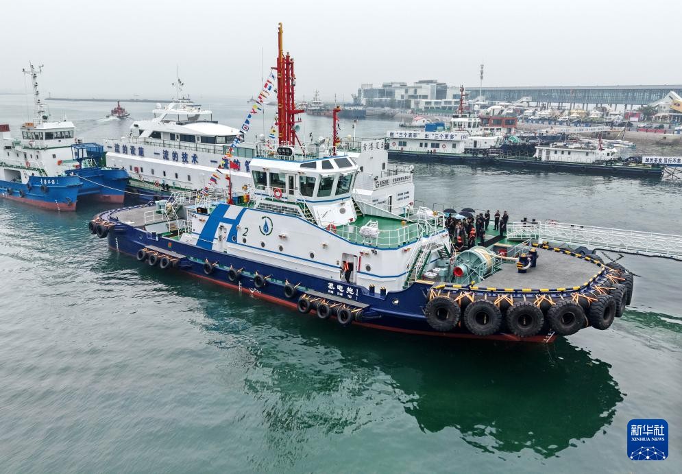 “氫電拖1”輪靠泊在山東港口青島港碼頭(圖源:新華社) 該拖輪搭載“氫燃料電池+液冷鋰電池”混動系統,可實現零碳排放,9節航速下續航超12小時,拖力達82噸。其創新應用北斗集成系統、全自動智能岸基充電等技術,填補多項中國國內空白,成為中國馬力最大、鋰電池容量最大的港作拖輪。 與傳統燃油拖輪相比,它在設備壽命、能源利用等方面優勢顯著,可大幅降低港口作業碳排放。投產以後,預計每年減少二氧化碳排放1500余噸。(完) 【編輯:淩玉輝】