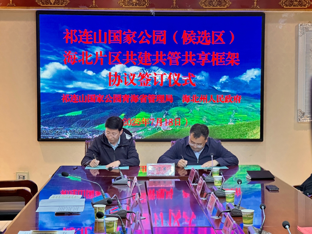 2025年7月18日,祁連山國家公園青海省管理局與海北州人民政府在海北州祁連縣共同舉辦祁連山國家公園(候選區)海北片區共建共管共享框架協議簽訂儀式。青海省林業和草原局副局長、祁連山國家公園青海省管理局副局長韓強,海北州副州長韓石致辭並簽訂協議。