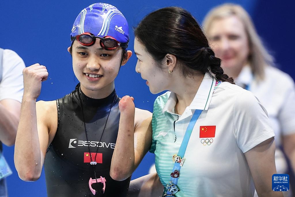 8月10日,中國選手黃詩雨(左)在比賽前。當日,2025年成都世運會自由潛水女子動態有蹼FFS1-FFS2決賽舉行,中國選手黃詩雨以149.5米的成績奪冠。 圖片來源:新華社 龍鄧喜摘得自由潛水男子動態無蹼FFS1到FFS2金牌。黃詩雨獲得自由潛水女子動態有蹼FFS1到FFS2冠軍,中國隊還獲得了女子4X100米蹼泳接力的金牌。此外在昨晚進行的泰拳比賽中,劉曉慧為中國隊奪得女子48公斤級金牌,韓鑫在女子60公斤級奪冠。中國選手胡譯乘/張欣欣奪得蹦床女子雙人同步金牌。