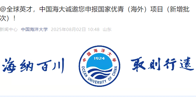 圖源:中國海洋大學通過微信公眾號 據澎湃新聞13日報道,中國海洋大學通過微信公眾號發布信息稱,誠邀全球英才申報國家優秀青年科學基金(海外)項目新增批次,並公布一系列極具吸引力的支持措施。 其中,最受矚目的政策亮點是“穩定的職業保障”。凡入選者將被聘為學校高層次人才工程教授,納入事業編制,授予博士生導師資格,享有薪酬增長機制和良好學術環境,且明確不實行“非升即走”與競爭性淘汰機制,為青年學者提供長期穩定的發展路徑。 信息稱,學校還提供優渥薪酬、充足科研經費、完備團隊支持、優質生活保障及全程申報服務。值得一提的是,即便申報國家優青(海外)項目進入會評但未最終入選者,經校內評審後仍可獲聘為人才工程教授,納入事業編制並享受相應待遇。