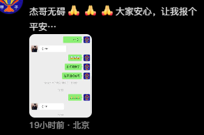 李連杰在社交平台抖音發布病床照片。圖源:李連杰抖音賬號截圖 一位自稱與李連杰聯繫過的網友在抖音分享對話截圖,稱“杰哥無礙,大家安心,讓我報個平安”。該網友隨後在李連杰帖文下補充,表示李連杰“能吃能喝,狀況很順利,很快會與大家見面”,試圖安撫外界擔憂。雖然李連杰未公開具體病因,但友人報平安的留言讓粉絲稍感寬慰。