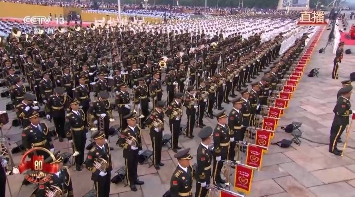 9月3日上午,紀念中國人民抗日戰爭暨世界反法西斯戰爭勝利80周年大會在北京天安門廣場隆重舉行(圖源:香港中通社) 中俄朝元首“世紀同框” 這是繼2015年之後,中國再次在天安門廣場舉行抗戰主題的紀念大會。62位外國領導人及有關國家高級別代表、國際組織負責人、前政要等應邀出席大會。其中,俄羅斯總統普京,朝鮮勞動黨總書記、國務委員長金正恩此次來北京,行程備受關注。 上午約8時30分,中俄朝元首在紀念抗戰勝利80周年的活動同框,一同登上天安門城樓,畫面格外受關注,被視為“世紀同框”。觀禮區設置的直播大屏幕上,當三位領導人同框時,現場許多觀眾都感興趣地舉起手機拍攝。當天上午的活動,電視轉播多次切換到三位元首頻頻互動畫面,也成為了長安街上新型裝備之外,全球關注的細節。 重要講話掌聲持續 當天上午,在56門禮炮的80響鳴放中,紀念大會拉開序幕,國旗護衛隊官兵護衛著五星紅旗排列成“80”的字樣,現場氣氛肅穆。隨後,中國人民解放軍聯合軍樂團奏響《義勇軍進行曲》,全場齊唱中華人民共和國國歌。 在熱烈的掌聲中,習近平發表重要講話。記者留意到,約十分鐘的講話中,現場多次響起掌聲;習主席講到“中華民族偉大復興勢不可擋!人類和平與發展的崇高事業必將勝利!”時,掌聲持續,迴盪在天安門廣場上空。當天現場氣氛熱烈,在軍樂團演奏、閱兵儀式過程中,掌聲、歡呼聲、歌唱聲,貫穿整個大會活動。 兩組車牌號有深意 標兵就位,號角響起。習近平乘紅旗檢閱車,經過金水橋,駛上長安街,依次檢閱13個徒步方隊、1個戰旗方隊、22個裝備方隊。多個“首次”、“新域”武器裝備亮相長安街,吸引世界目光。 此次閱兵用車,有一個細節寓意深刻。車牌號“1945”和車牌號“2025”,前者的麥克風前是空著的,這一細節在網絡刷屏,有現場觀禮的市民說,看到那輛空車,讓人很想唱一首歌——《如願》。 “1945”和“2025”這兩個年份號牌,也是進入人民大會堂前的觀禮區後,最矚目的兩個數字,銘記歷史、珍愛和平,兩個數字就能體現這一主題。 “三個必勝”新口號 在檢閱儀式中,口號是外界關注的其中一個焦點。不少外媒留意到,“正義必勝!和平必勝!人民必勝!”是今年閱兵出現的一組新口號。習近平乘車駛回天安門途中,受閱官兵齊聲高呼:“聽黨指揮!能打勝仗!作風優良!”“正義必勝!和平必勝!人民必勝!” 觀禮區的舊照片 本次大會設立了觀禮區,可容納五萬人同時觀禮。記者留意到,來現場觀禮的一位男士,掏出一張抗戰先輩的黑白舊照片,與本次活動邀請函並排,在長安街前合影。特別是新型武器裝備經過時,這位男士也拿出照片與武器合影,似乎在對先輩說:“抗戰勝利已經80年了,看看現在我們國家的國防力量已經這麼強大了”(完) 【編輯:淩玉輝】