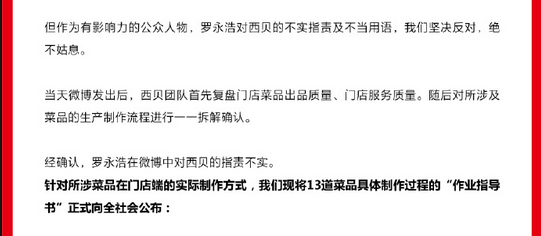 圖為西貝回應“預製菜”爭議。圖源:西貝官方微博賬號截圖