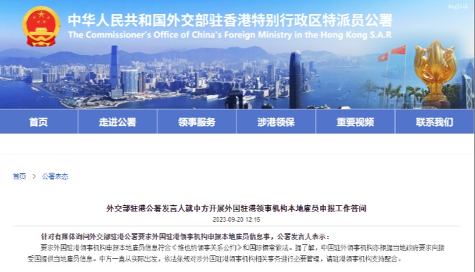 不得危害國安!《外國駐華外交領事機構中國籍僱員管理條例》公布香港新聞網9月16日電 據中國政府網消息,《外國駐華外交領事機構中國籍雇員管理條例》(下稱《條例》)已經7月31日國務院第65次常務會議通過,自2026年1月1日起施行。 《條例》規定,非經本條例規定的程序,中國公民不得私自受雇於外國駐華外交領事機構。 此外,《條例》顯示,中國籍雇員應當遵守中國的法律、法規,履行勞動合同規定的義務,不得實施危害國家安全、損害社會公共利益的行為,不得以外交代表、領事官員身份開展活動。