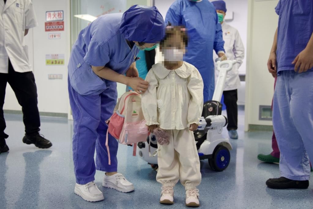 9月23日,南京市兒童醫院的醫護人員與患兒交流互動。新華社發(南京市兒童醫院供圖) 據新華社報道,手術歷時9小時,由南京市兒童醫院名譽院長、心臟中心主任莫緒明團隊聯合天津泰達國際心血管病醫院院長劉曉程團隊共同完成。術中,團隊攻克了狹小胸腔的器械空間分配、左右心血流平衡等難題。術後一周,患兒已能正常進食和短距離行走。 這名患兒3年前被確診為罕見的限制型心肌病,今年7月病情急劇惡化,心衰指標遠超危險閾值。因5歲幼兒心臟供體極度稀缺,醫院與家屬充分溝通後,決定為其實施雙心室人工心臟植入手術。 據悉,兒童心臟衰竭是醫學界長期面臨的難題。對於終末期心衰患者,除心臟移植外,被稱作“人工心”的“植入式心室輔助裝置”是重要治療手段。 全球範圍看,“植入式心室輔助裝置”的技術持續迭代,歷經第一代搏動式 “人工心”、第二代軸流式“人工心”,目前已發展至第三代磁懸浮“人工心”。但“人工心”最初是針對成人設計,低齡、低體重患兒因胸腔狹小等限制,無法與其適配。 莫緒明說,此次手術的患兒情況更為特殊,不僅體重很輕、胸腔很小,且心腔遠小於正常兒童,傳統“人工心”無法適配。此外,患兒左右心同時衰竭,需要通過雙心輔助實現左右心血流平衡。